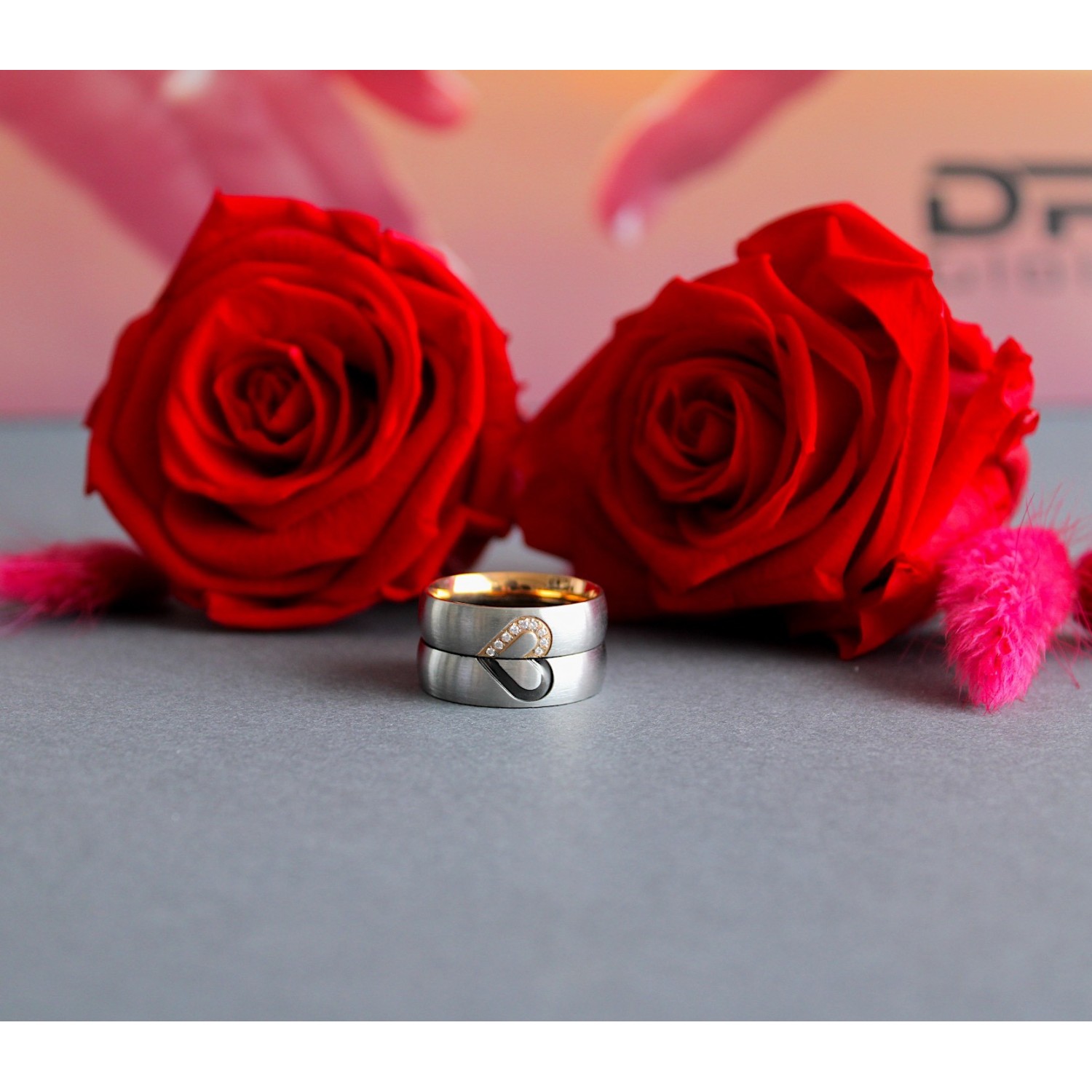 • Coppia di Fedine Satinate con Cuore Spezzato