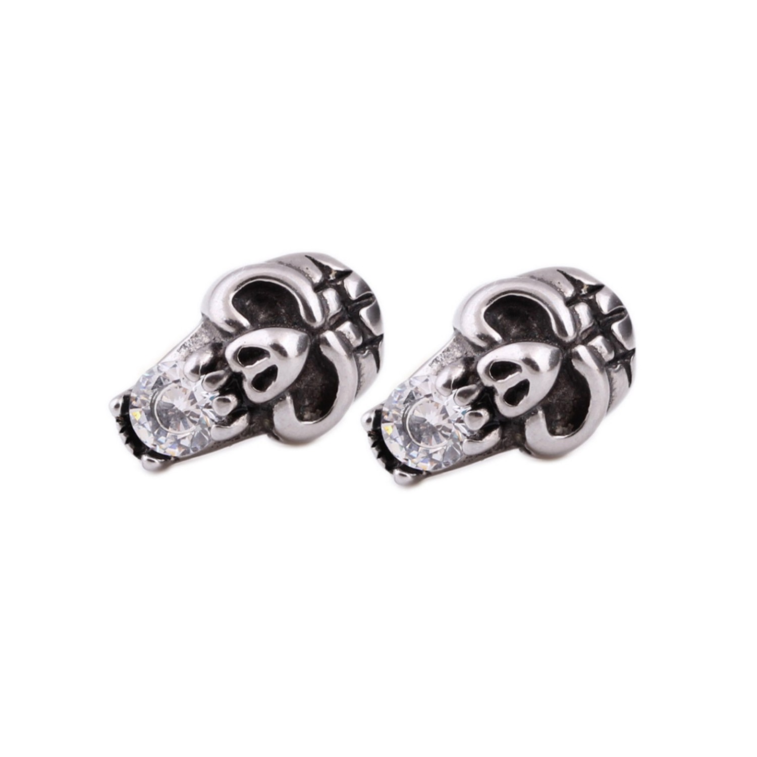 Orecchini in acciaio unisex a forma di teschio. Accattivanti ed eleganti, per chi non rinuncia ad esprimere la propria personalità.
